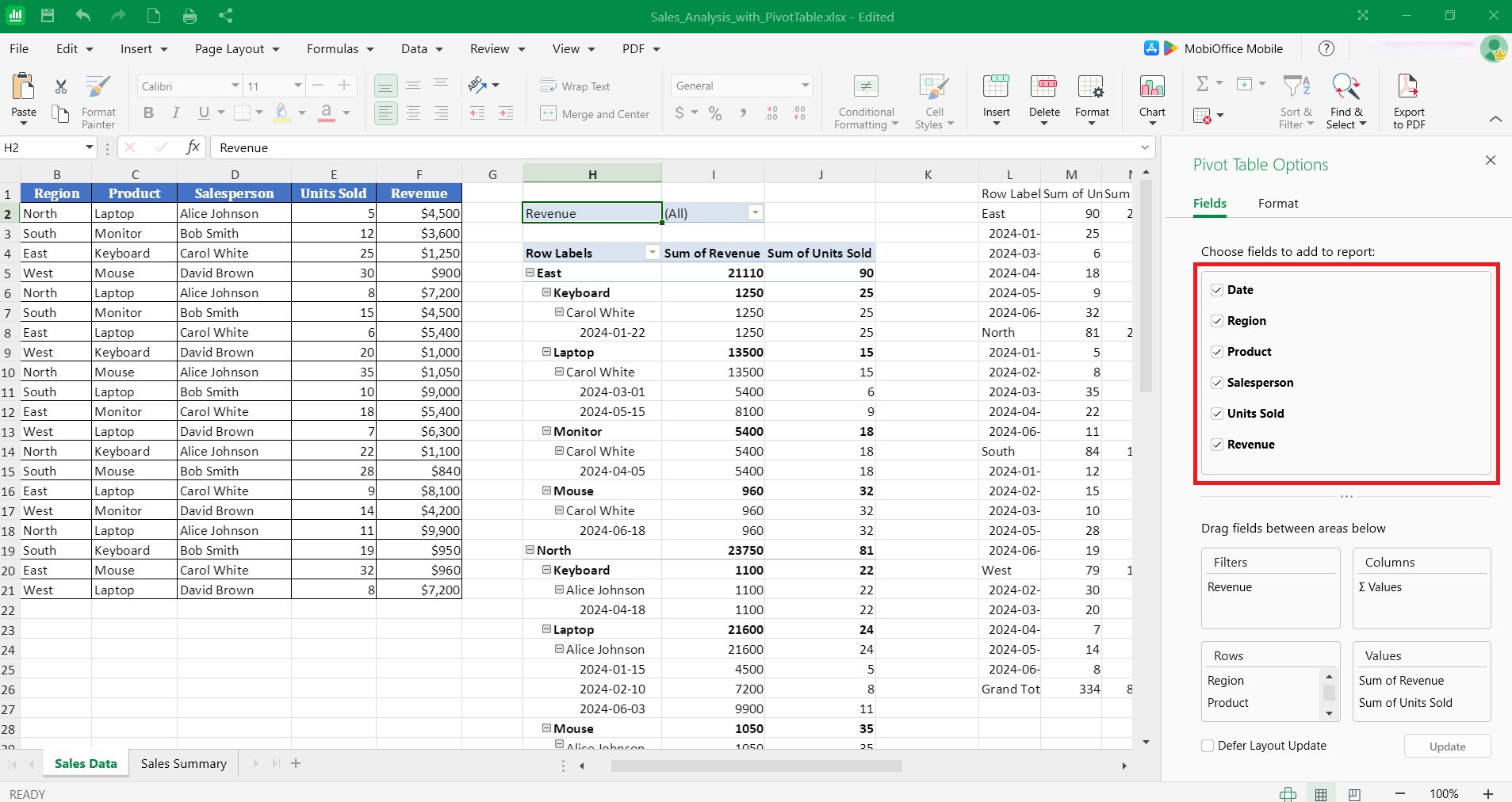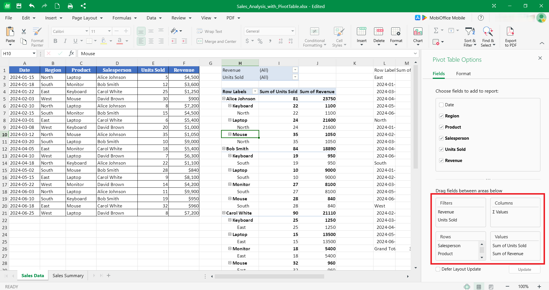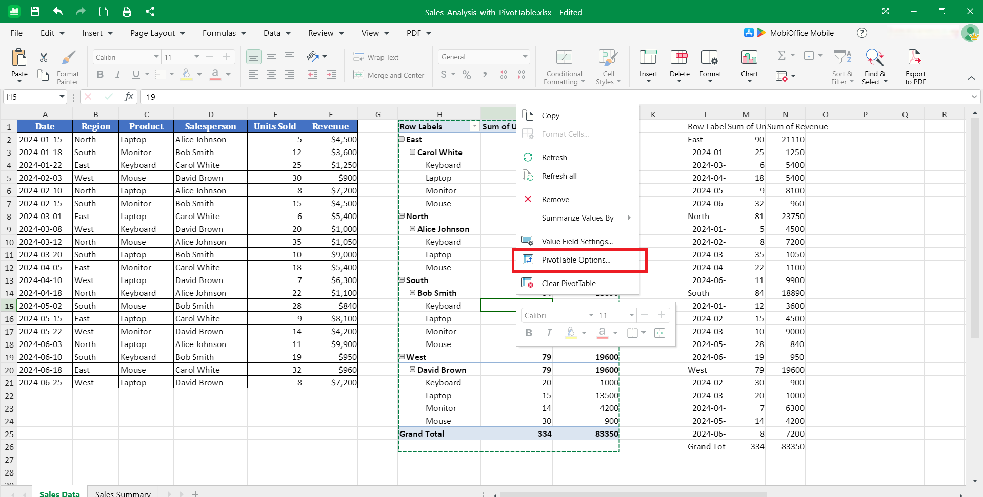 Manage pivot tables efficiently with MobiSheets