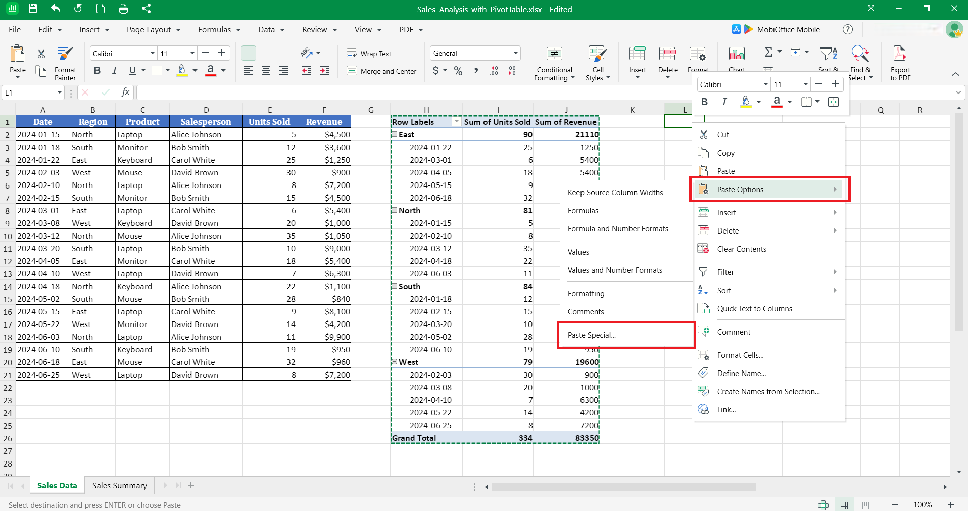 The pivot table converts to regular cells containing the same numbers, text, and formatting. You can now safely delete any remaining pivot table objects without losing the displayed data. After conversion, the data becomes static and won't update when source data changes.