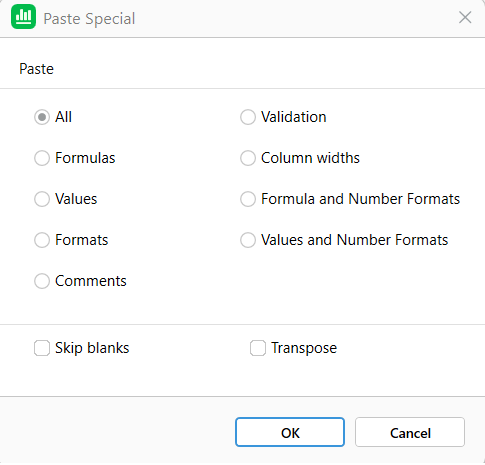 Right-click on the cell then choose Paste Options → Paste Special.
