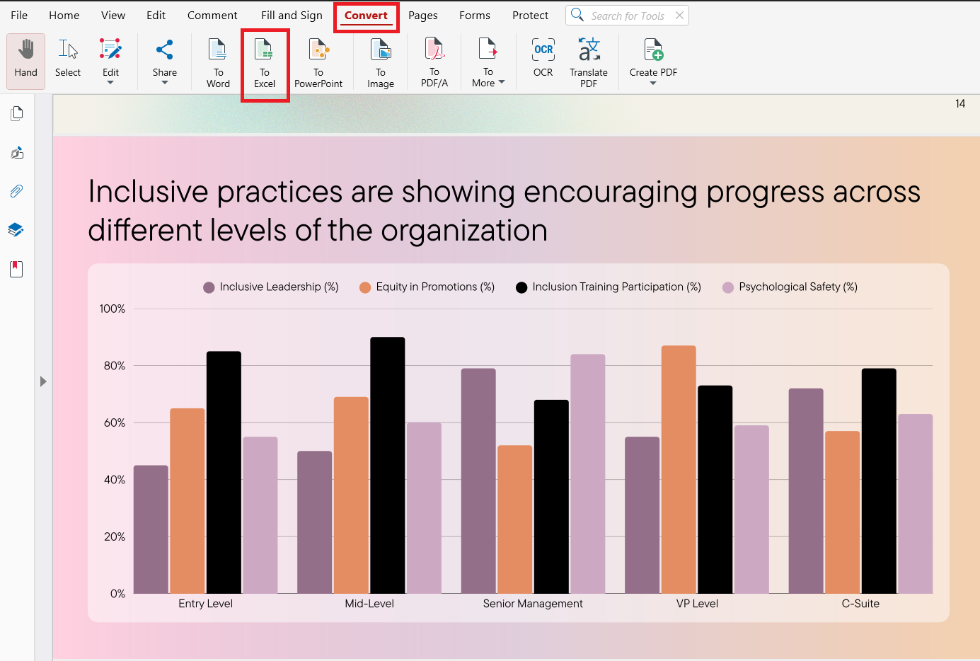 Converting a PDF to Excel consists of just a few easy steps – open your PDF, choose Convert → PDF to Excel, then export an editable XLSX file with preserved tables, formulas, layouts, and complete data accuracy.