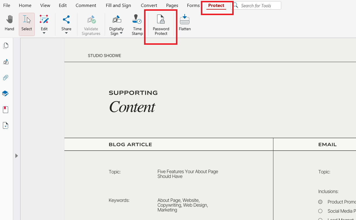 PDF ソフト側で、パスワードを追加せずに編集権限を無効にできます。MobiPDF では、保護またはセキュリティ設定から行います。ファイルには引き続きアクセスできますが、変更はできません。