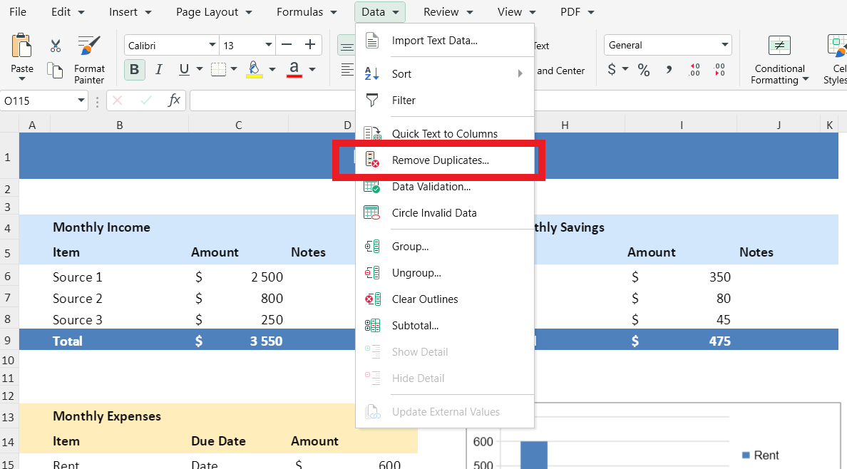 2. Ga naar Gegevens → Dubbele waarden verwijderen.